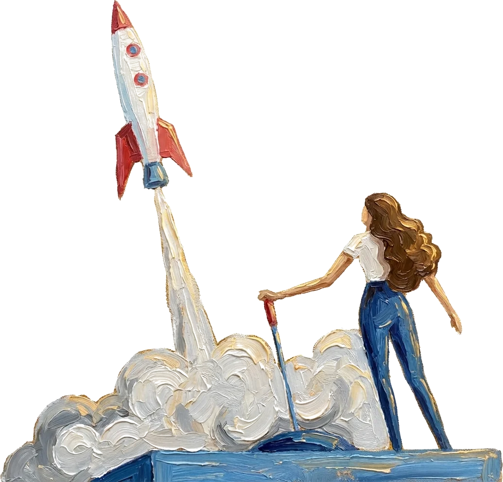 Then I applied the same thinking to the characters. Start24 has this illustration of a woman with a rocket. She'd always been a flat vector drawing, clean and functional. I ran her through the same process.